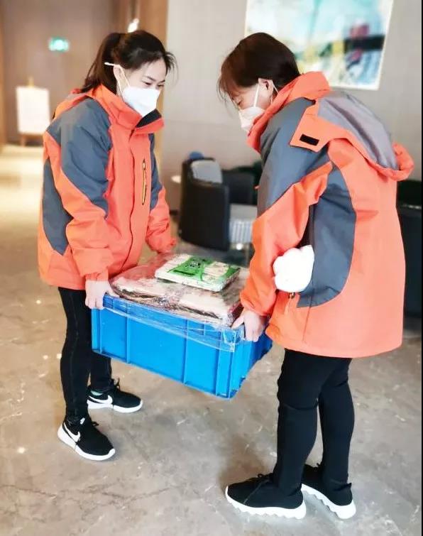 為避免人員頻繁出入,降低交叉感染風險,每個樓層固定兩名工作人員,負責全樓層30多人一日三餐的收發(fā),幾十個房間的垃圾清運處理,樓層公共區(qū)域消毒,各類生活物資清點搬運分發(fā),工作量非常大!但是這些姑娘沒有人叫苦叫累,都自稱女漢子,互相加油打氣!