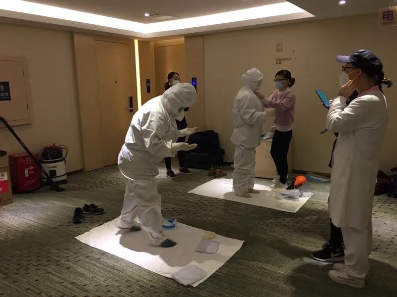 從伴隨清晨第一縷陽(yáng)光睜眼開始,測(cè)體溫、多飲水、適當(dāng)運(yùn)動(dòng)鍛煉呼吸、84消毒液噴灑涂抹房間角角落落等等,一樣不落。我自知已經(jīng)踏上這光榮的戰(zhàn)場(chǎng)和兄弟姐妹們并肩作戰(zhàn)。同時(shí),為了做好戰(zhàn)斗準(zhǔn)備,作為戰(zhàn)士的我們今日進(jìn)行了穿脫“盔甲”的嚴(yán)格培訓(xùn)。