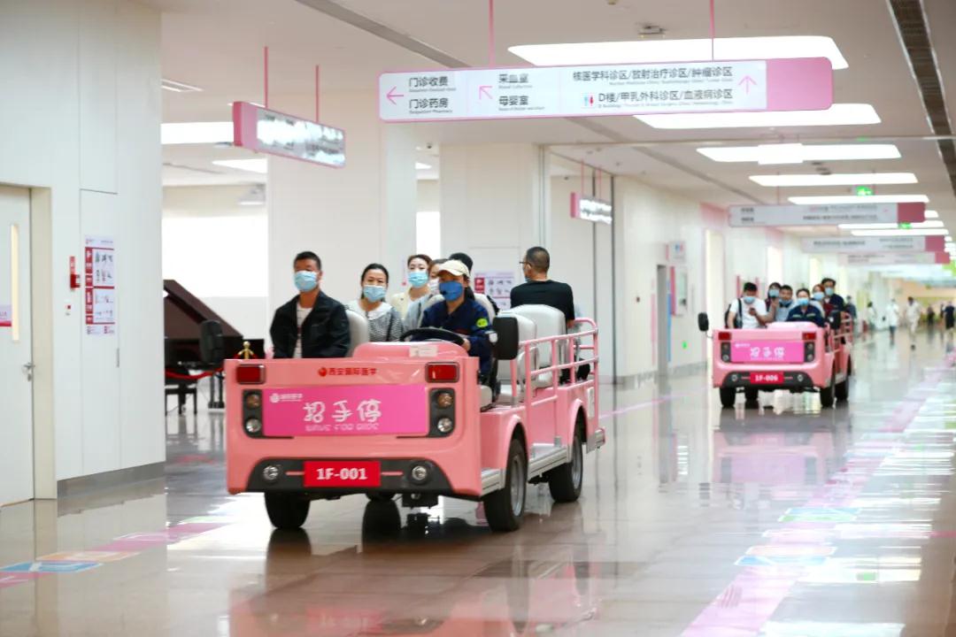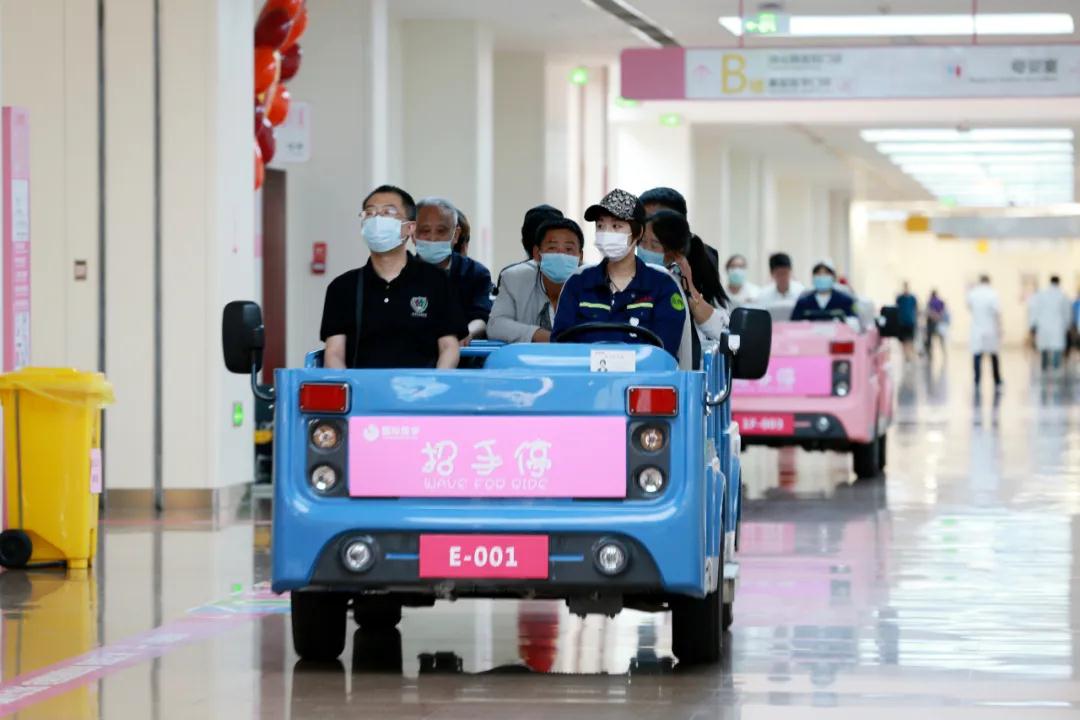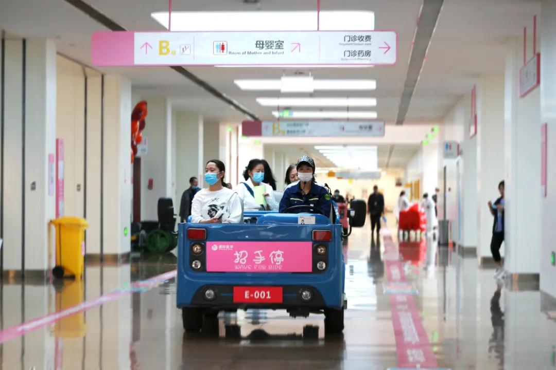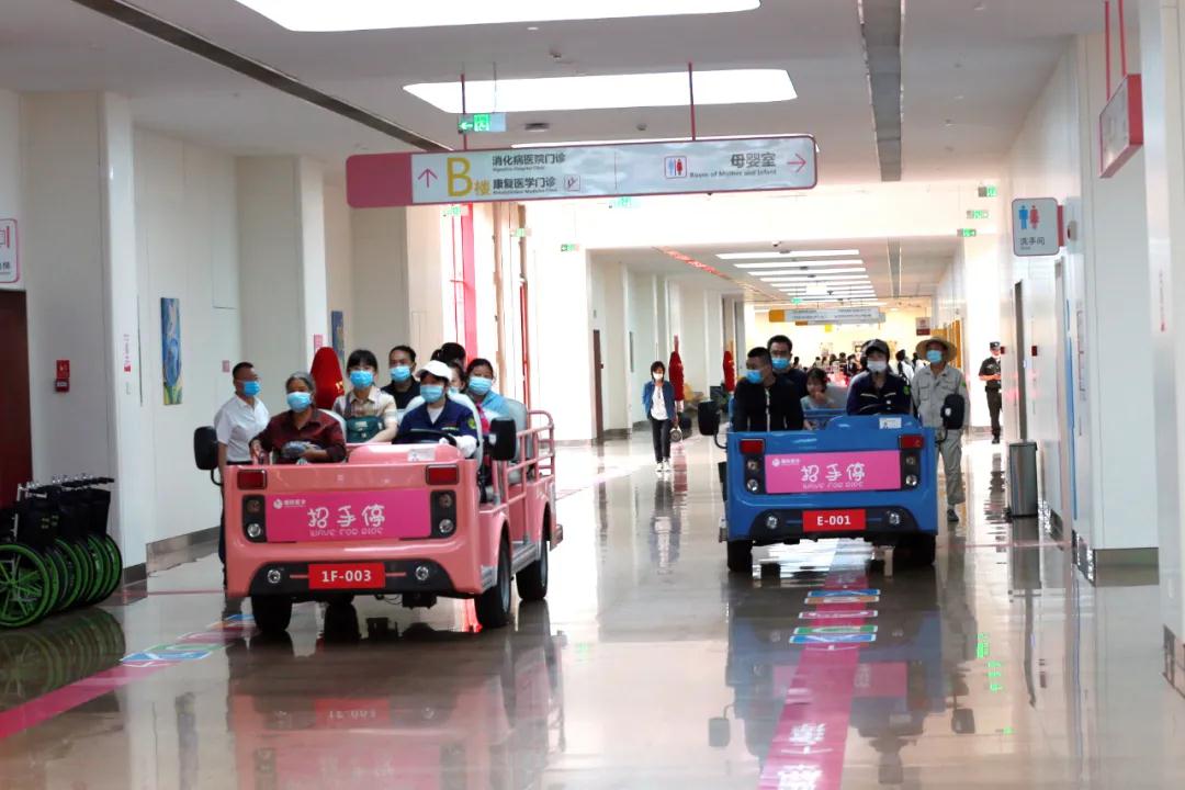 自2019年9月25日開診以來,醫(yī)院在門診一二三層都配備了“招手?!彪娖寇?,免費(fèi)接送就醫(yī)民眾和醫(yī)護(hù)人員往返于各專科醫(yī)院和科室,隨招隨停。