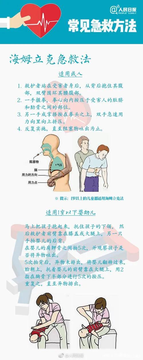 如果不小心嗆入飯粒或其他物體,要采取海姆立克急救法,將氣管的物體吐出來。