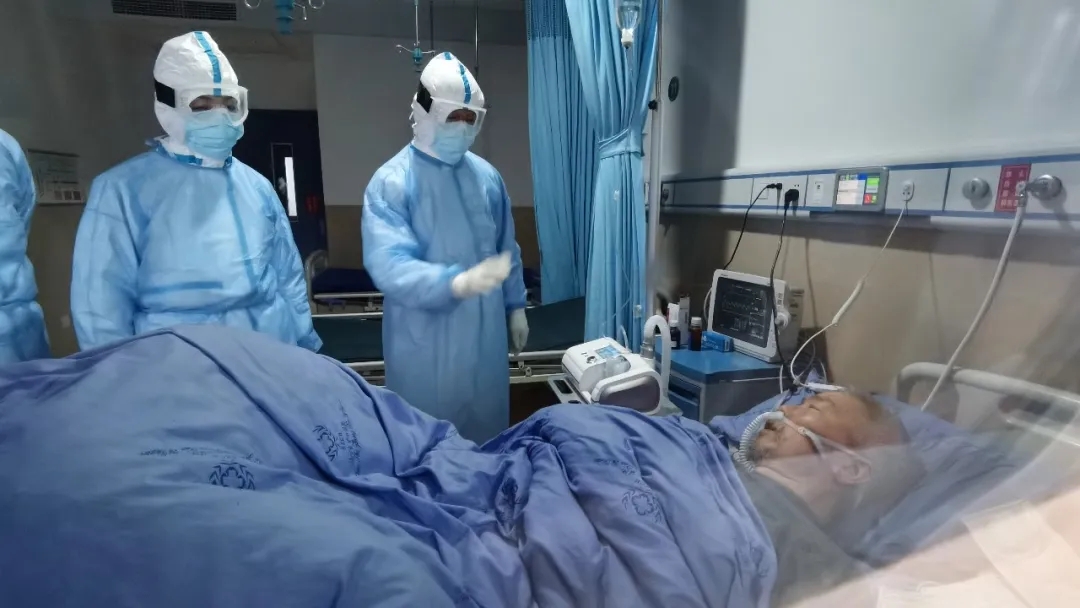 著名呼吸專家吳昌歸教授、心臟病學(xué)專家王海昌教授、著名傳染病學(xué)專家賈戰(zhàn)生教授等查房后,共同為患者制定治療方案。腫瘤醫(yī)院副院長薛妍教授、楊宗義主任、倪曉慧總護(hù)士長等一邊調(diào)整治療方案,一邊鼓勵(lì)患者。高釗醫(yī)生主動(dòng)承擔(dān)起患者的監(jiān)護(hù)任務(wù)。