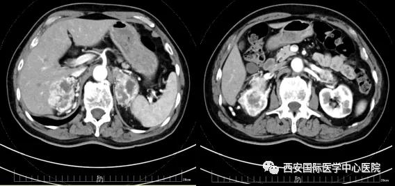 今年七十五歲的患者,來(lái)自陜西省商洛市,四月前因腰背部疼痛就診于當(dāng)?shù)蒯t(yī)院,行CT檢查發(fā)現(xiàn)“右腎、雙側(cè)腎上腺占位,前縱膈淋巴結(jié)腫大,雙肺多發(fā)結(jié)節(jié)、胸椎骨質(zhì)破壞,考慮轉(zhuǎn)移瘤”。為進(jìn)一步診斷治療,患者的兒子帶他來(lái)到西安某三甲醫(yī)院,查泌尿系CT提示“右腎占位性病變,多考慮腎癌,雙側(cè)腎上腺多發(fā)轉(zhuǎn)移灶,腹膜后多發(fā)腫大淋巴結(jié)”;行穿刺活檢提示“腎透明細(xì)胞癌”;并給予患者口服靶向藥物的治療方案。