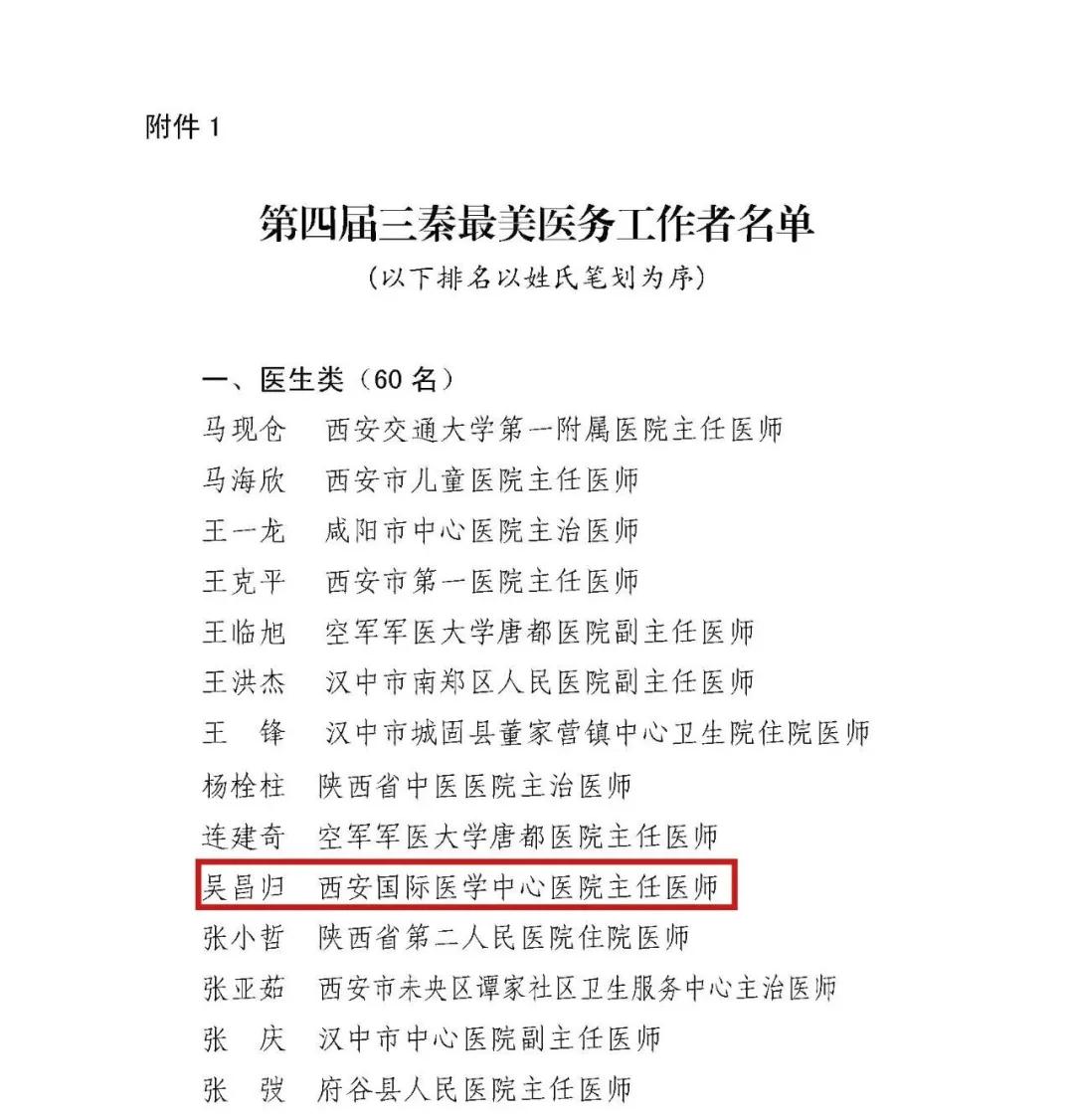 陜西省衛(wèi)健委授予吳昌歸“第四屆三秦最美醫(yī)務(wù)工作者”榮譽(yù)稱號(hào)
