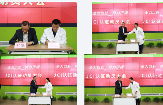 尹強(qiáng)院長(zhǎng)與??漆t(yī)院院長(zhǎng)、臨床科室、醫(yī)技科室、檢驗(yàn)中心及機(jī)關(guān)職能部門主任、代表,簽署了《評(píng)審目標(biāo)責(zé)任書》。消化病醫(yī)院執(zhí)行院長(zhǎng)韓國(guó)宏、腫瘤一病區(qū)黎冬梅護(hù)士長(zhǎng)分別發(fā)言,一致表示,一定積極參與、配合、支持相關(guān)工作,為我院順利通過(guò)JCI認(rèn)證工作全力以赴!