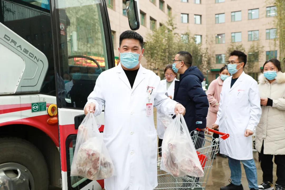 當日上午,蒙古國捐贈的486箱冷凍羊乘“接運專車”到達陜西西安。按照國家統(tǒng)一部署,羊經(jīng)過嚴格檢驗檢疫加工后轉(zhuǎn)運陜西省,分配給前往湖北參與新冠肺炎疫情醫(yī)療救治工作的醫(yī)療隊員。我院收到100箱捐贈羊。下午五點,張良院長助理帶領(lǐng)綜合辦公室工作人員,將一袋袋羊肉發(fā)到醫(yī)療隊隊員們手中。