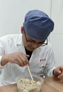 “餃子出鍋了!大家辛苦了!都來(lái)吃餃子!”剛出鍋的餃子冒著熱氣,香味彌漫在醫(yī)生辦公室、護(hù)士站。接到熱騰騰的餃子,重癥醫(yī)學(xué)科醫(yī)生張永樂(lè)迫不及待地咬了一口,牛肉大蔥餡正是他的最愛(ài)?!斑x擇了醫(yī)學(xué)就意味著奉獻(xiàn),看著醫(yī)院的年味越來(lái)越濃,病區(qū)里的患者一個(gè)個(gè)好轉(zhuǎn),病區(qū)患者慢慢變少,我還是挺有成就感的?!睆堄罉?lè)笑著說(shuō)。