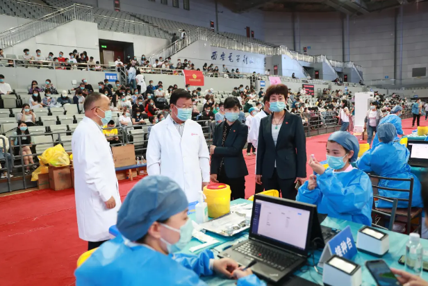 8日上午,西安國際醫(yī)學(xué)中心醫(yī)院總經(jīng)理王志峰、副院長楊峰、院長助理劉延彤等領(lǐng)導(dǎo)來到西安電子科技大學(xué)指導(dǎo)檢查新冠疫苗接種工作。醫(yī)院領(lǐng)導(dǎo)先后查看了接種區(qū)、留觀區(qū)等區(qū)域的管理及人員配備情況,督促工作人員加強統(tǒng)籌協(xié)調(diào),做好接種引導(dǎo),要按照流程要求確保接種工作的安全有序開展。