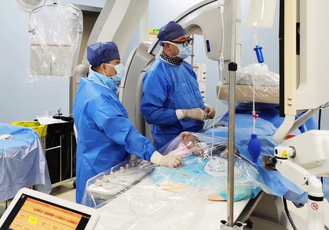 入手術(shù)室時(shí),患者神志迷糊,口唇干燥、重度貧血貌,心電監(jiān)護(hù)提示:心率140-160次/分,血壓70/43mmHg,這是失血性休克的表現(xiàn)!白葦快速建立靜脈通道緊急給予輸血,升壓,止血等液,立即給予肝動(dòng)脈造影,術(shù)中發(fā)現(xiàn)肝左葉疑似腫瘤病灶、病灶周?chē)芊种в性煊皠┩庖?,考慮血管破裂出血,迅速給予栓塞微球進(jìn)行肝動(dòng)脈栓塞。整個(gè)手術(shù)過(guò)程不足20分鐘,術(shù)后即刻患者心率降至100-110次/分、血壓升至90/60mmHg。