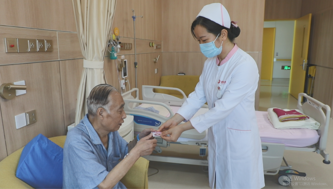 七月的一天,消化外科三病區(qū)的護士長楊妮妮將健康卡送到69歲的甘爺爺手中。