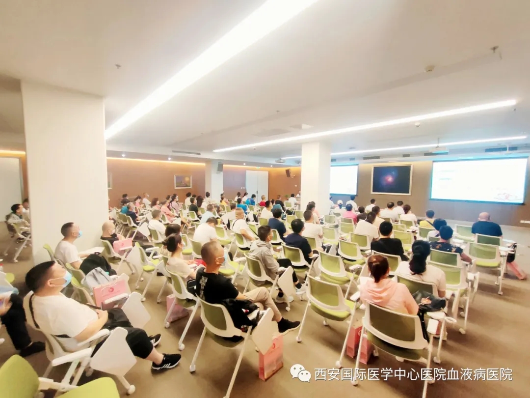 活動(dòng)在國(guó)際醫(yī)學(xué)中心醫(yī)院生殖醫(yī)學(xué)中心6層會(huì)議室進(jìn)行,由黃斯勇主任和崔江霞主任擔(dān)任會(huì)議主持,來(lái)自陜西、山西、甘肅的近百名慢粒患者參會(huì)。