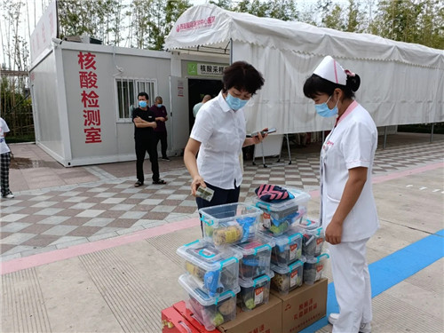 在第四屆“中國醫(yī)師節(jié)”到來之際,我院開展了主題為“百年華誕同筑夢,醫(yī)者擔(dān)當(dāng)踐初心”醫(yī)師節(jié)系列活動。通過多學(xué)科義診、走訪慰問等多個主題的活動,大力弘揚大醫(yī)精誠的崇高精神,彰顯新時代醫(yī)師風(fēng)采。醫(yī)院工會對戰(zhàn)斗在一線的醫(yī)務(wù)工作者進(jìn)行了慰問,把醫(yī)院領(lǐng)導(dǎo)的溫暖和工會組織的關(guān)懷,送到了一線醫(yī)務(wù)工作者的心坎里。工會主席李曉芳帶隊,前往發(fā)熱門診、急救中心、預(yù)防保健科、檢驗中心等科室,為醫(yī)務(wù)人員送上慰問品。