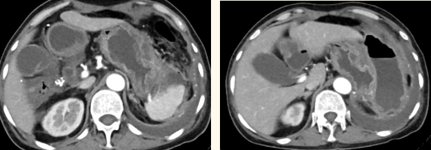 一籌莫展的她終于在病友的介紹下,來到西安國(guó)際醫(yī)學(xué)中心醫(yī)院找到蔡磊主任。經(jīng)過詢問病史,查體等,蔡磊主任建議口服索坦治療。3個(gè)月后,李阿姨復(fù)查CT提示胃間質(zhì)瘤較前明顯縮小,大小約10.4cm?6cm。但仍存在消化道出血,營(yíng)養(yǎng)狀況差,全身無力,骨髓抑制。蔡磊主任隨即將患者收治入院。
