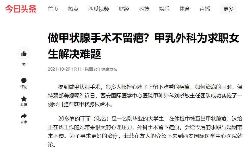做甲狀腺手術(shù)不留疤?甲乳外科為求職女生解決難題