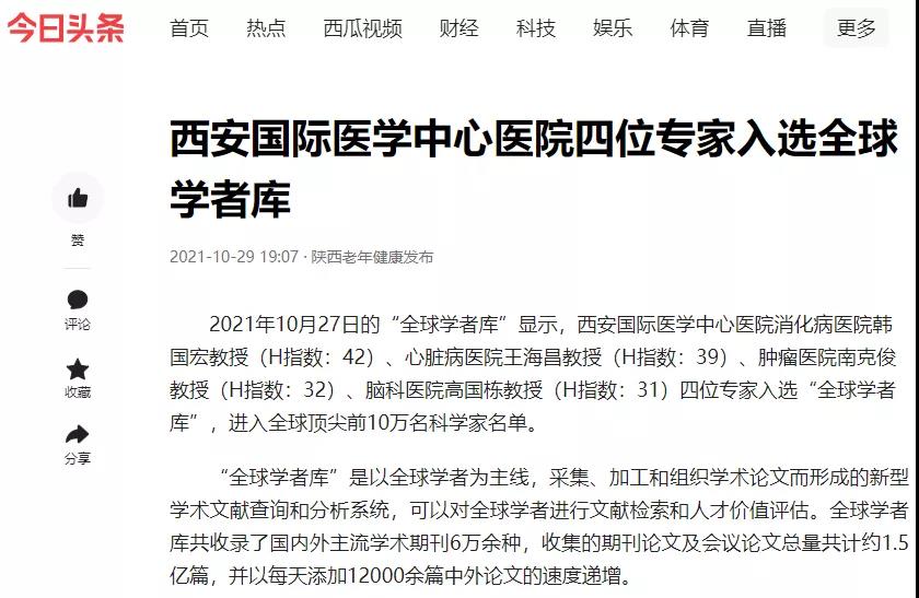西安國(guó)際醫(yī)學(xué)中心醫(yī)院四位專(zhuān)家入選全球?qū)W者庫(kù)