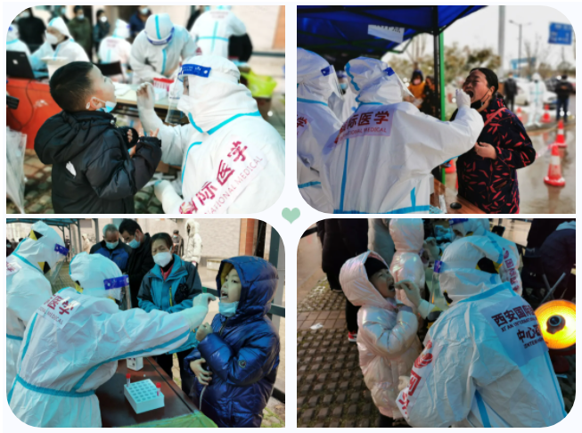 12 月 25 日,西安國(guó)際醫(yī)學(xué)中心醫(yī)院派出 252 名醫(yī)護(hù)人員,奔赴西安市高新區(qū)各個(gè)核酸采集點(diǎn),開展核酸檢測(cè)工作。