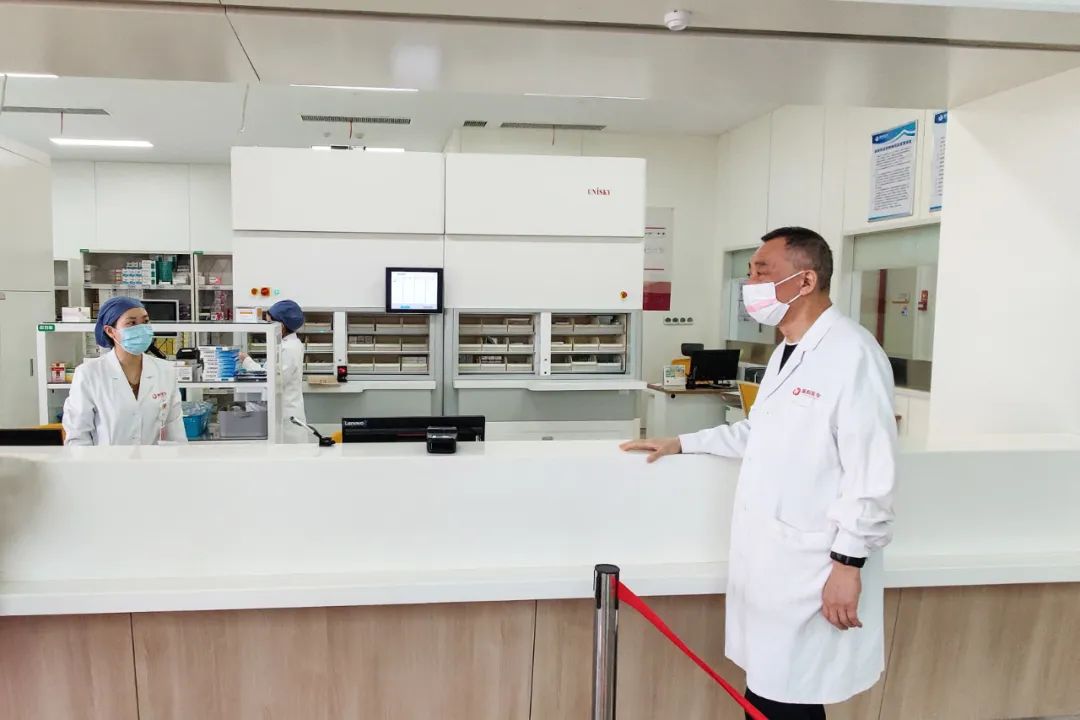 5月1日上午,尹強(qiáng)院長(zhǎng)來(lái)到門(mén)診、收費(fèi)處、藥房等重點(diǎn)區(qū)域,督導(dǎo)疫情防控措施及診療工作,并向堅(jiān)守崗位的醫(yī)護(hù)人員致以節(jié)日的問(wèn)候。每到一處,尹強(qiáng)院長(zhǎng)都與醫(yī)護(hù)人員親切交談,大家倍感溫暖與鼓舞,紛紛表示,一定立足本職,堅(jiān)守崗位,認(rèn)真做好節(jié)日期間的疫情防控及醫(yī)療工作。