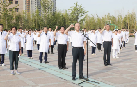 最后,付強(qiáng)副院長帶領(lǐng)全體新員工舉起右手,莊嚴(yán)宣誓:“我們是天的使者,以救死扶傷為天職.......”,鏗鏘有力的誓言在萬人廣場久久回蕩。