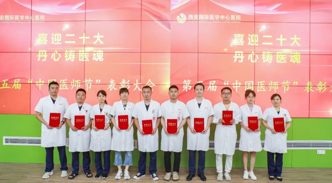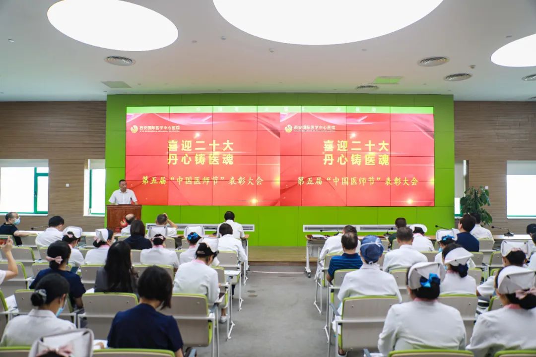 為進一步加強醫(yī)師隊伍建設,不斷激發(fā)我院醫(yī)師職業(yè)榮譽感、神圣感、使命感,在中國醫(yī)師節(jié)到來之際,西安國際醫(yī)學中心醫(yī)院舉行“喜迎二十大 丹心鑄醫(yī)魂”第五屆中國醫(yī)師節(jié)表彰大會。院長尹強、總經理王志峰、財務總監(jiān)王亞星、副院長李武平、楊峰、張斌、劉延彤、付強以及醫(yī)生代表參加。