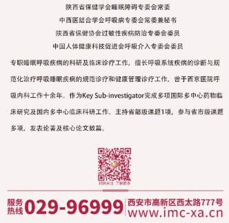 歡迎垂詢(xún)西安國(guó)際醫(yī)學(xué)中心醫(yī)院胸科醫(yī)院睡眠呼吸障礙診療中心:029-68302616。