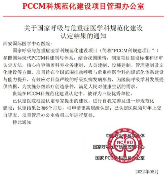 近日,國家呼吸與危重癥醫(yī)學科規(guī)范化建設項目管理辦公室發(fā)布新聞,西安國際醫(yī)學中心醫(yī)院獲國家呼吸與危重癥醫(yī)學科規(guī)范化建設三級醫(yī)院優(yōu)秀單位。據悉,這是省內繼西京醫(yī)院、唐都醫(yī)院、交大一附院、交大二附院后,第五家獲此殊榮的單位,標志著該院呼吸與危重癥醫(yī)學科綜合實力躋身國家優(yōu)秀行列。
