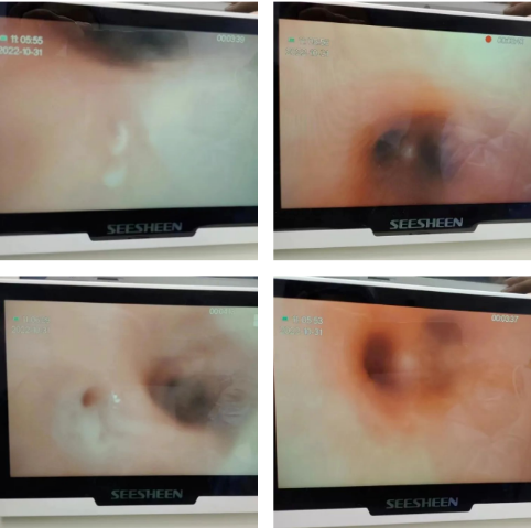 但胸部CT的結(jié)果表明小丸子的肺內(nèi)病變比較重,同時通氣也不均勻,確實存在堵塞,可這個"堵住氣管的東西”到底是什么,還得在支氣管鏡檢查下才能知道。在和小丸子的父母詳細溝通病情后,入院第二天一早,小兒內(nèi)科田恬主任便為其進行了無痛電子支氣管鏡檢查。