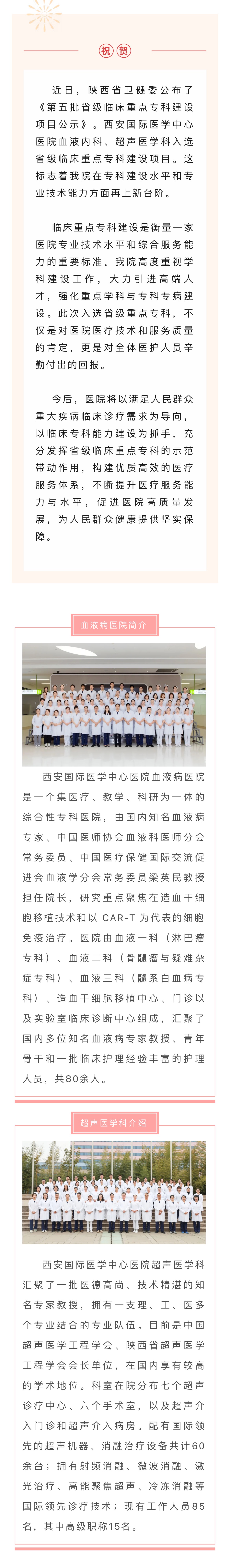 我院血液內(nèi)科、超聲醫(yī)學科入選省級臨床重點??平ㄔO項目