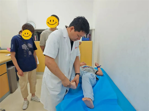 另一邊,楊寧主任近距離觀察孩子的運(yùn)動模式,手把手指導(dǎo)家長如何進(jìn)行科學(xué)有效的家庭康復(fù)訓(xùn)練,細(xì)致講解每一個動作的要領(lǐng)和目標(biāo),讓康復(fù)融入日常生活。
