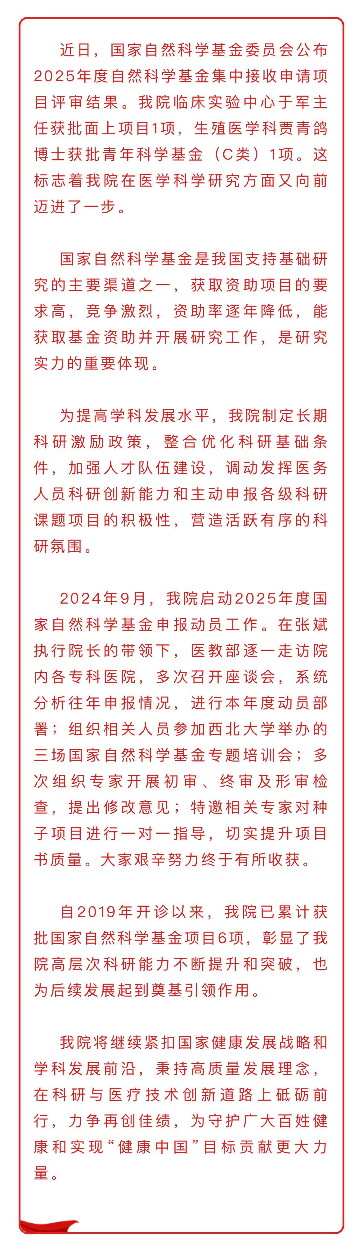 喜訊!我院獲批兩項2025年度國家自然科學基金項目
